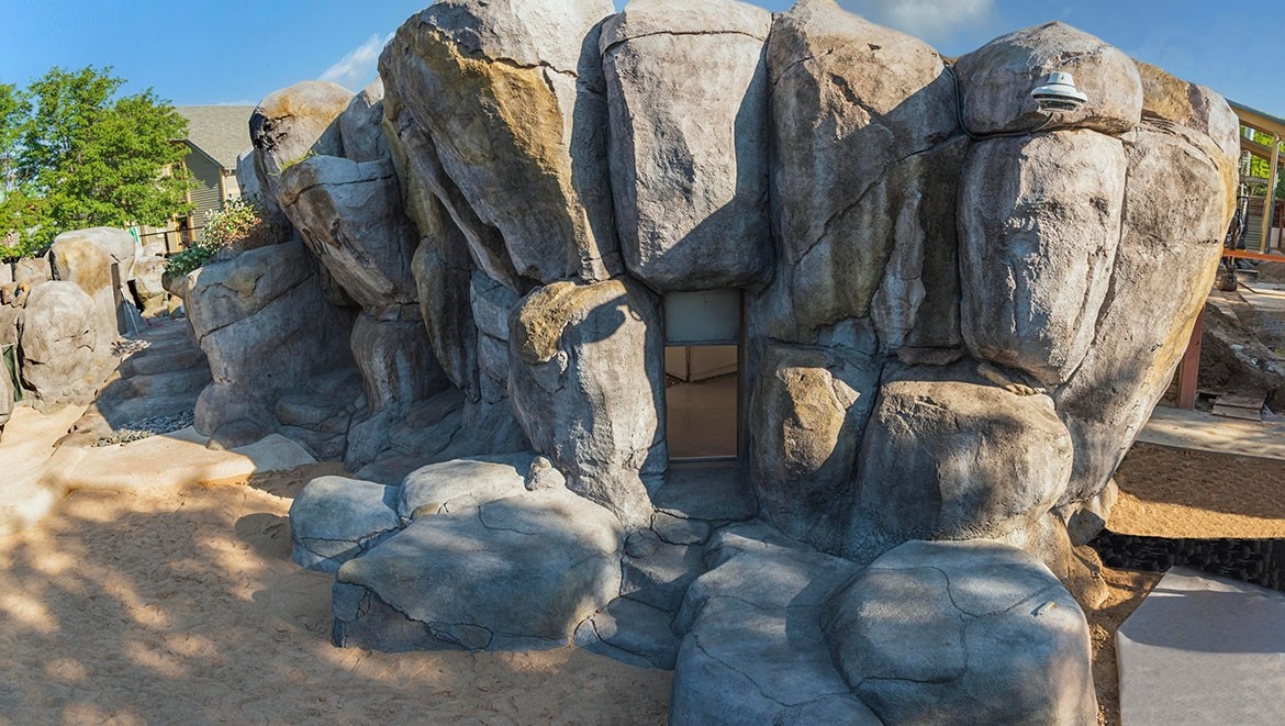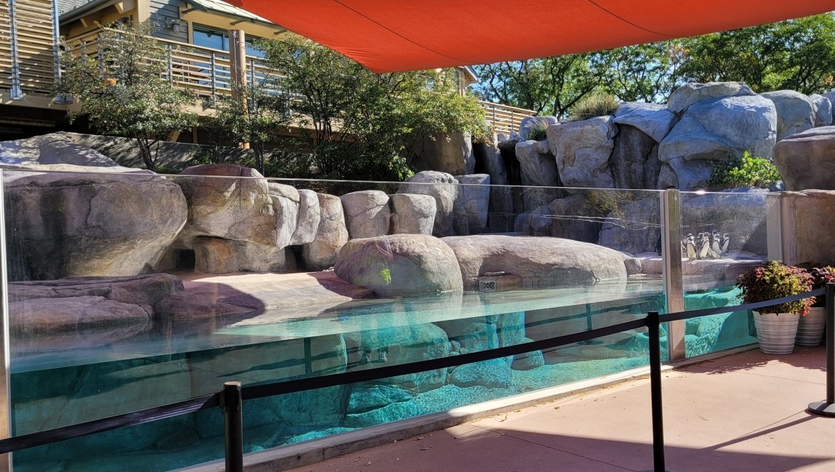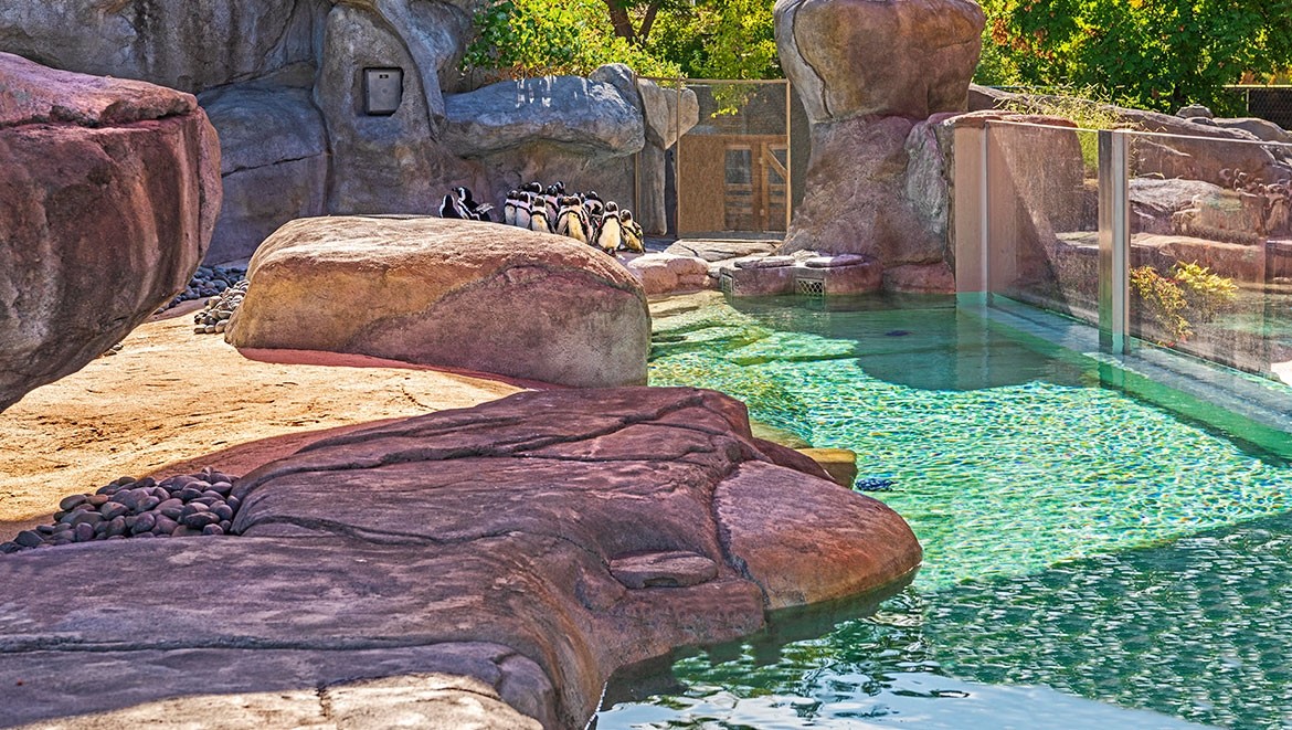 New African Penguin exhibit including shotcrete pool with electric radiant heat, full height acrylic viewing, and new LSS building. Existing holding facility was upgraded with bumble foot preventative flooring, caging, and transfer gates. The exhibit has a wet and dry side, theming, and even a wave machine!