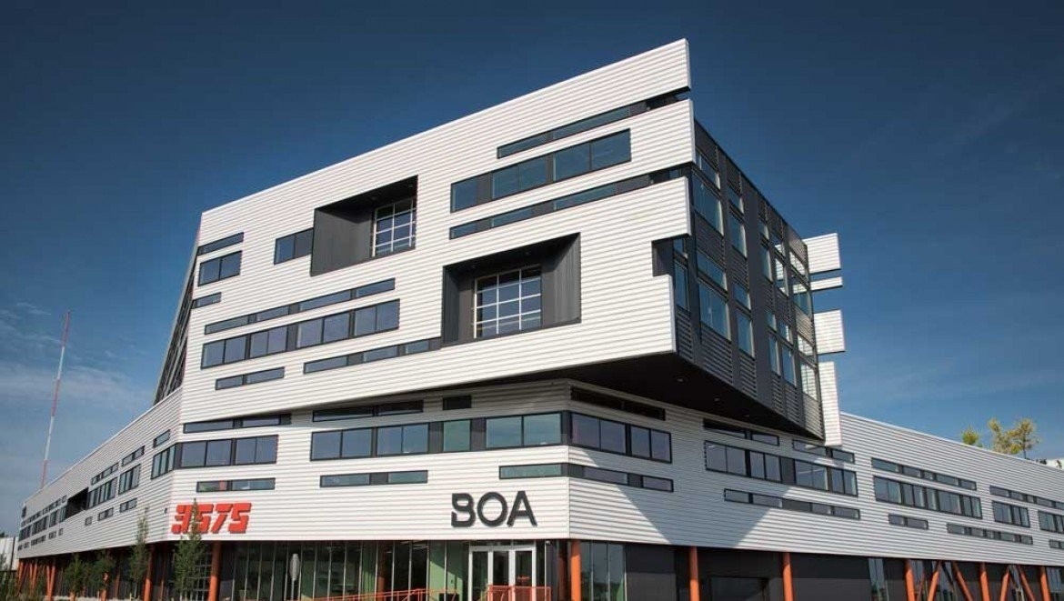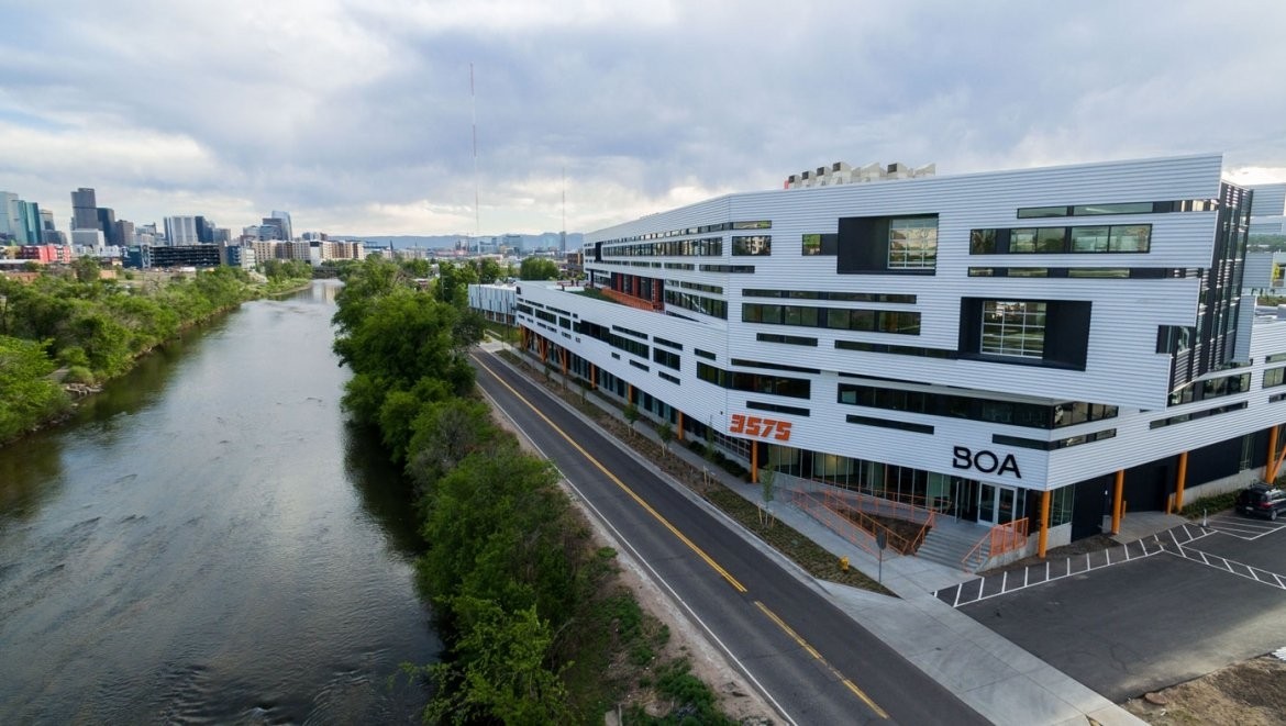 The Flight Office Building is part of the mixed-use Taxi Development in the trendy RiNo area of Denver. It is a 4-story, 140,000 SF building for Zeppelin Development. Zeppelin Development prides their buildings as being industrial feeling with open air concepts to give a collaborative feel. The project has a 13,000 SF Green Roof as well as a Photovoltaic Array on the 2nd and 4th floor roofs. BOA Technology, an international company who sells fastener systems that replace shoelaces with a wire and dial, will occupy 100,000 SF on the 1st and 2nd Floors. The first floor is specifically for building prototypes and testing of their products.
